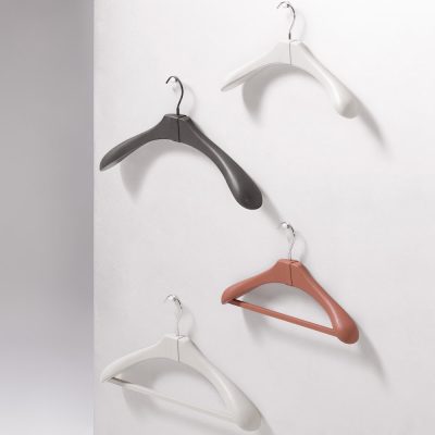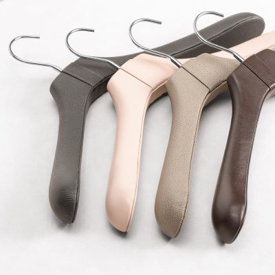 Giobagnara offers you a wide range of clothes hangers in wood, covered with either leather or a combination of leather, wool and cashmere.