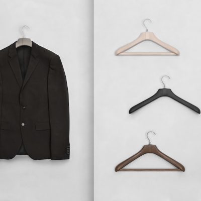 The hangers are available with or without trousers bar and on request with clips for trousers or skirt.