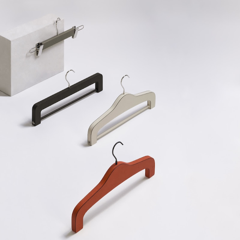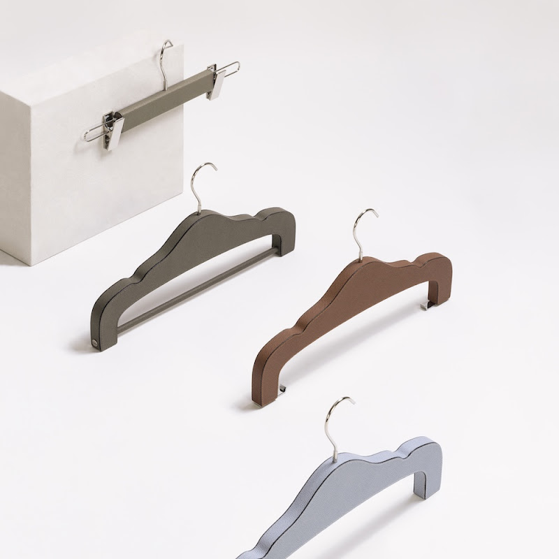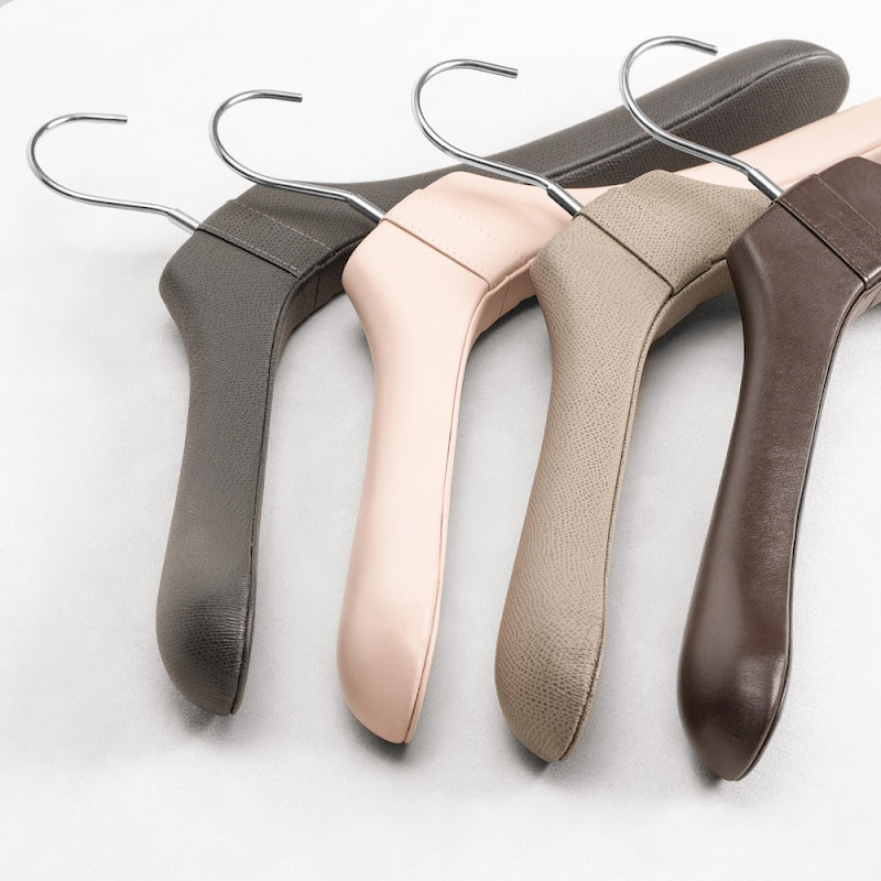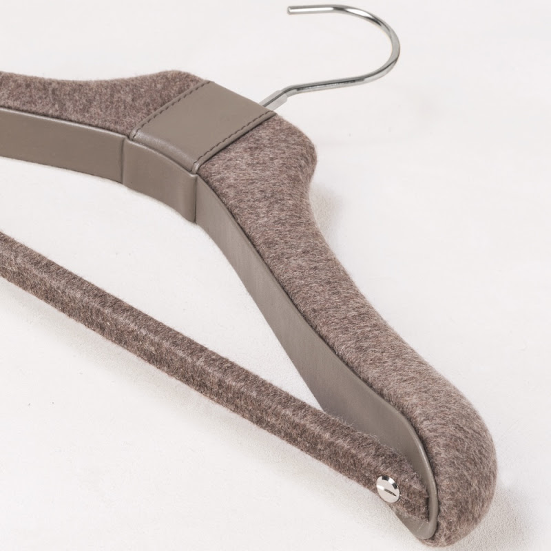 Giobagnara offers you a wide range of clothes hangers in wood, covered with either leather or a combination of leather, wool and cashmere.