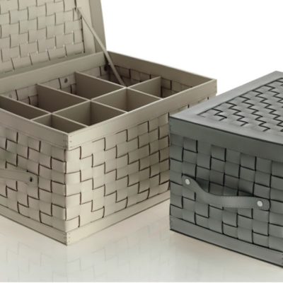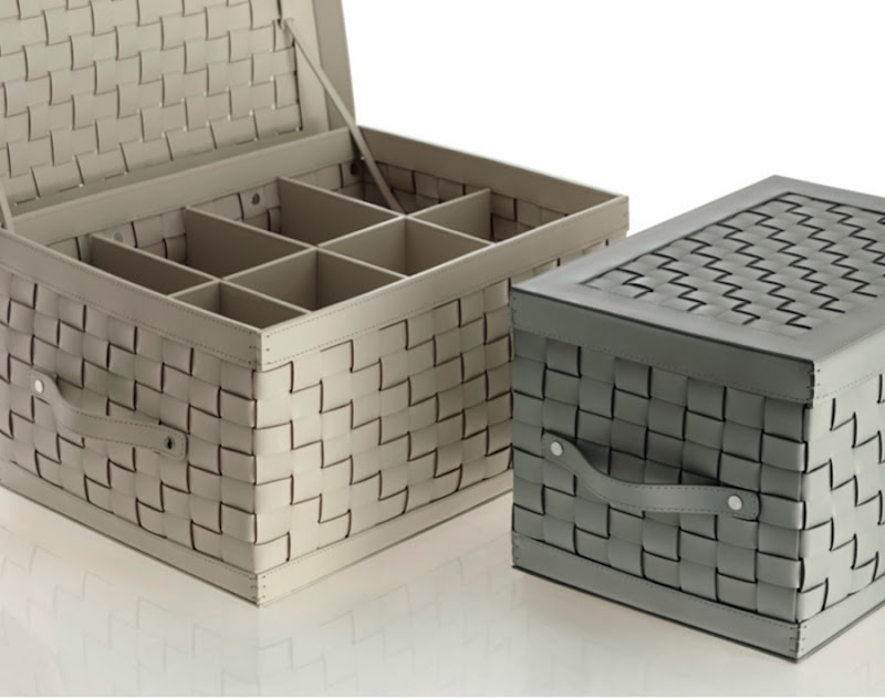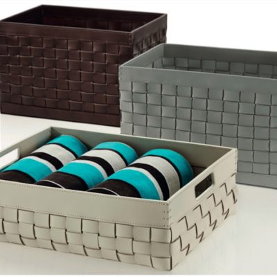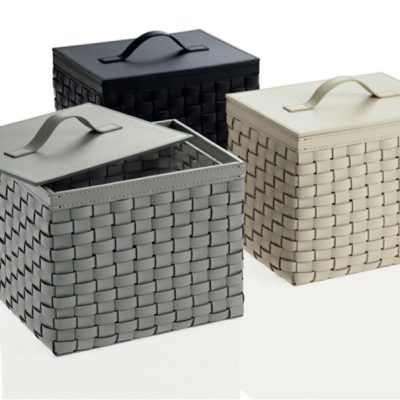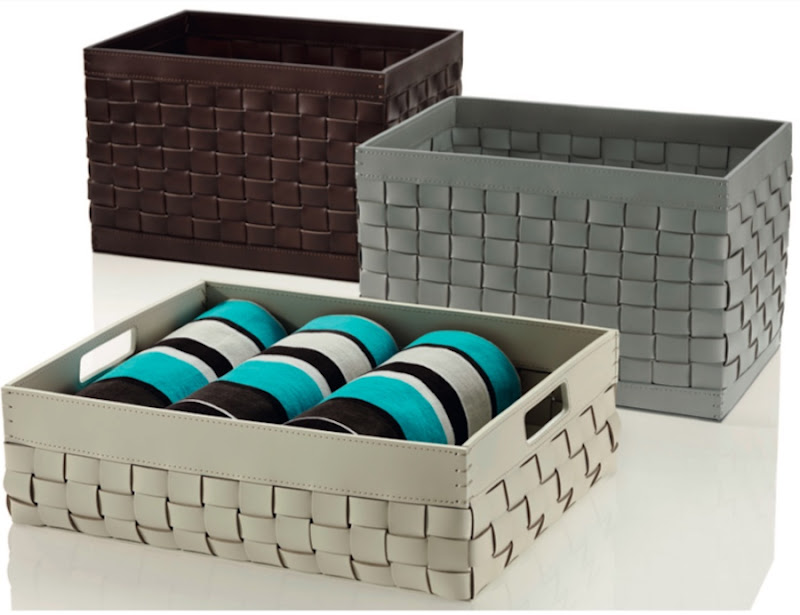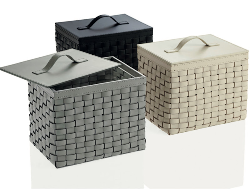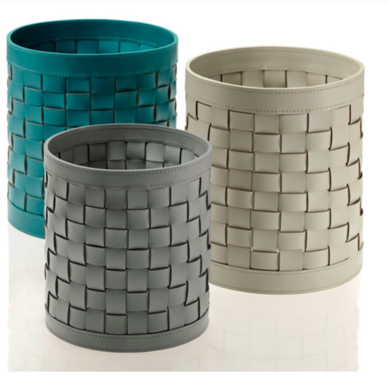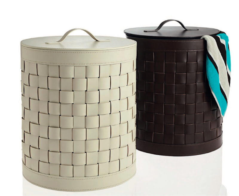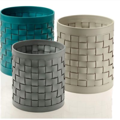 Various baskets made of specially treated calf leather, thus making them water resistant, and svery uitable to be used aboard yachts or in thepool area