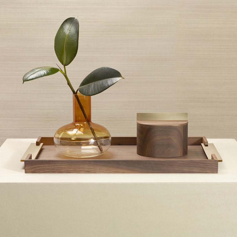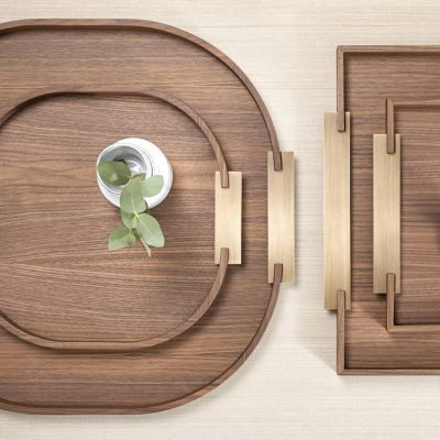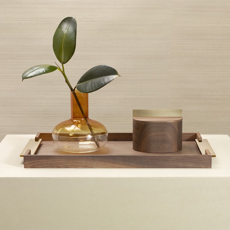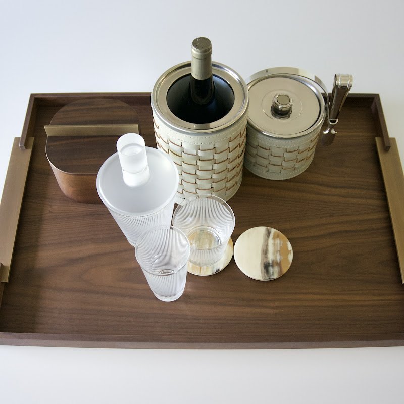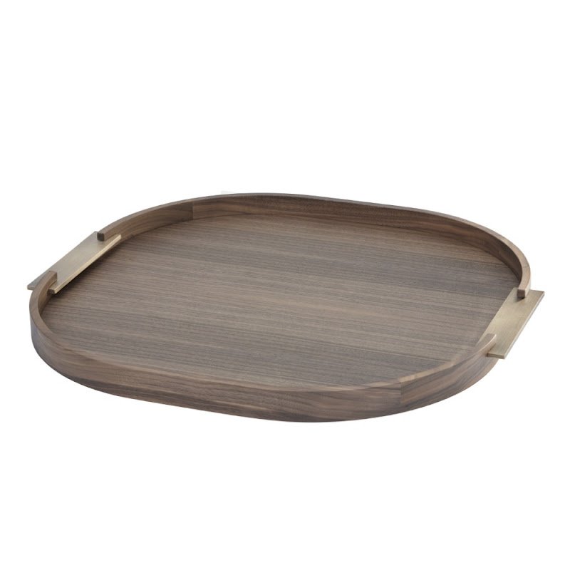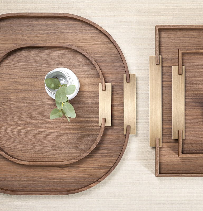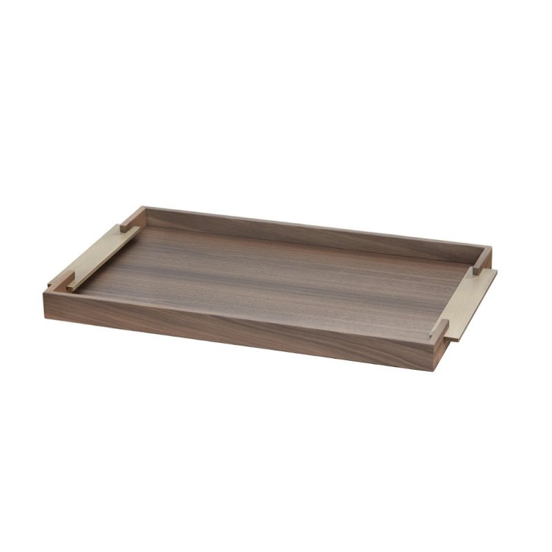 | Rectangular Tray made of Caneletto Walnut with brushed brass handles