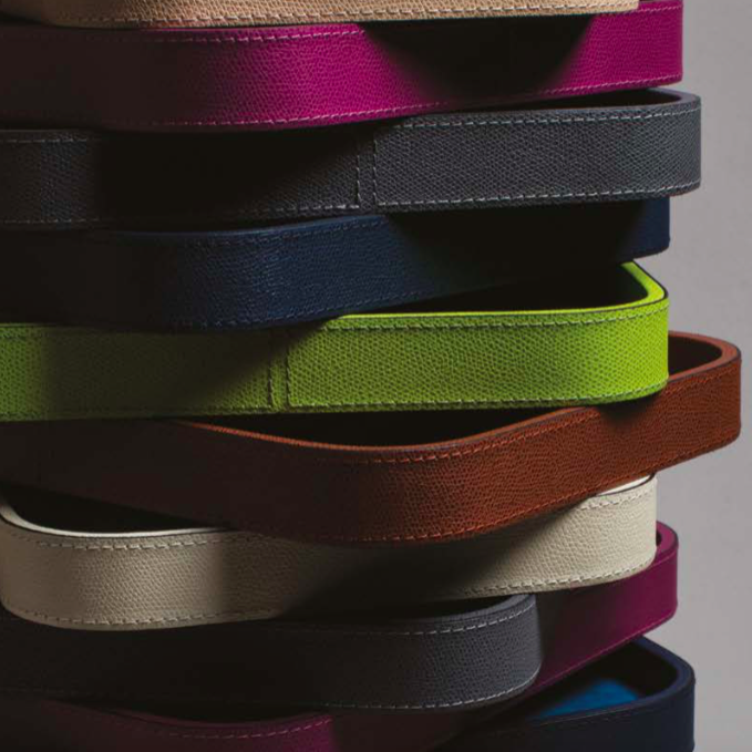 The leather is available in many colours and various finishes.
