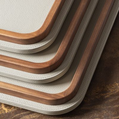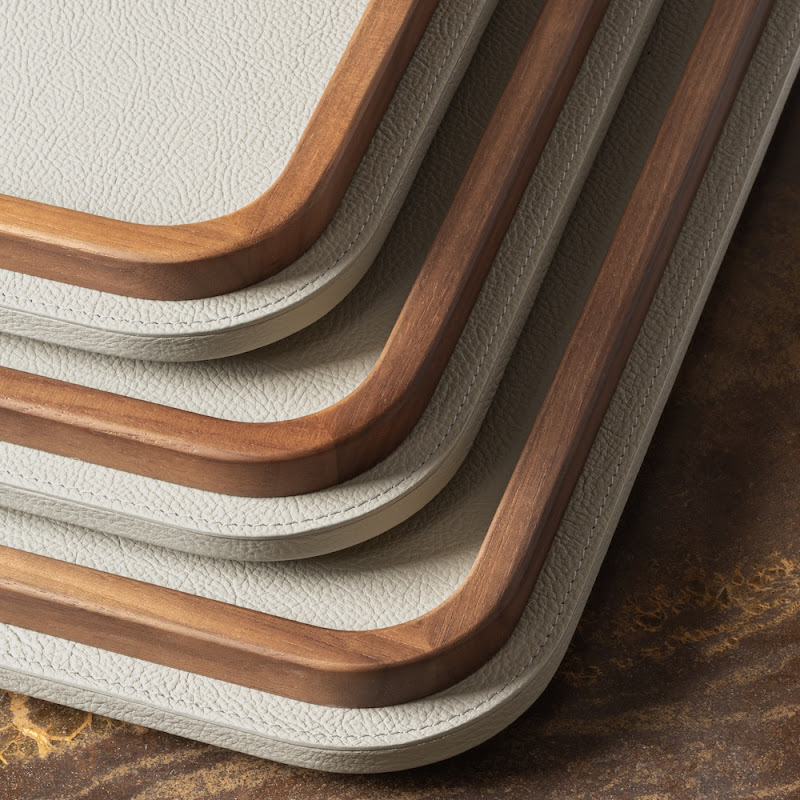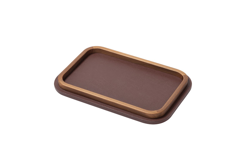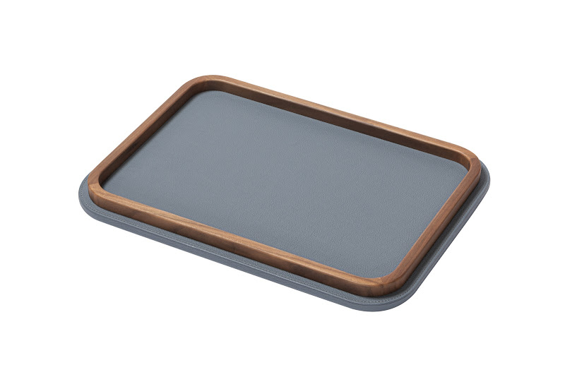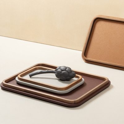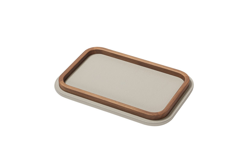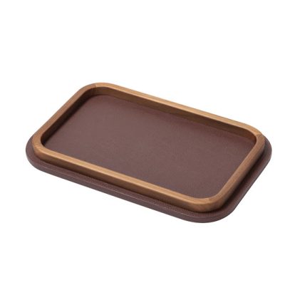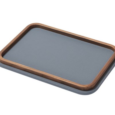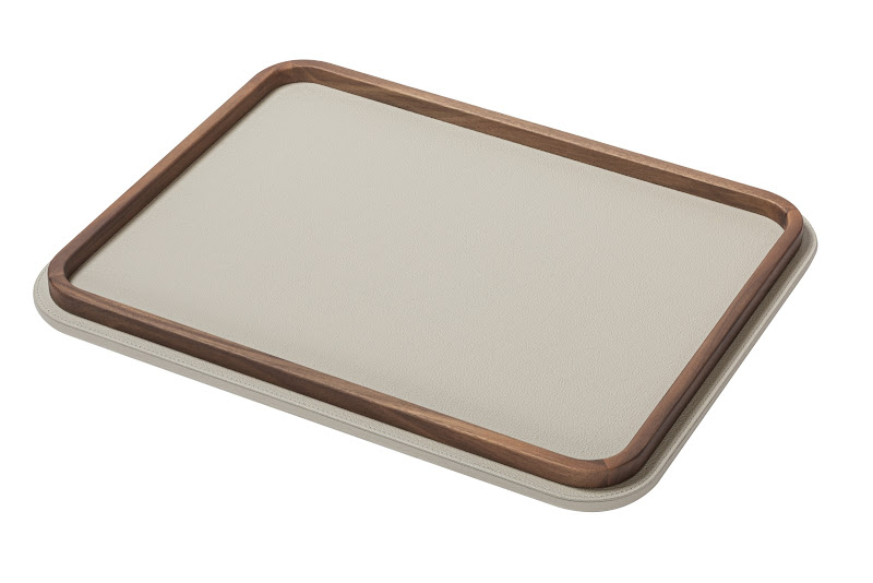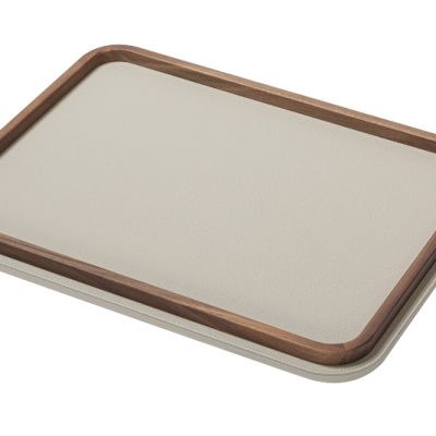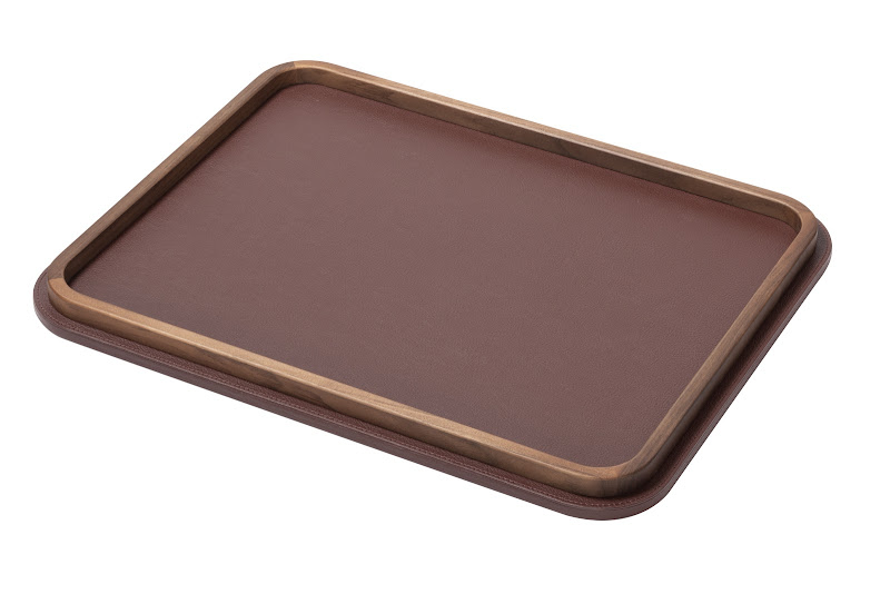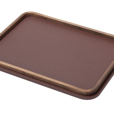 With inlay of Pelle Frau ® leather, rectangular tray with walnut wooden frame.