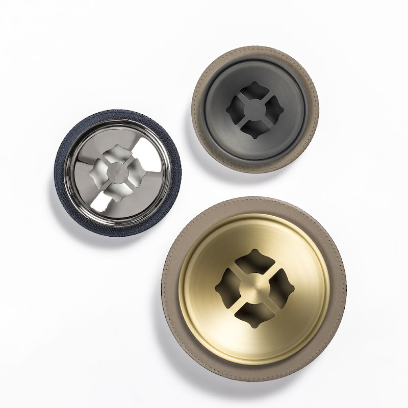 The Clan ashtray is available in both leather covered wooden stucture, as well as with a marble base, with removable brass ashtray.