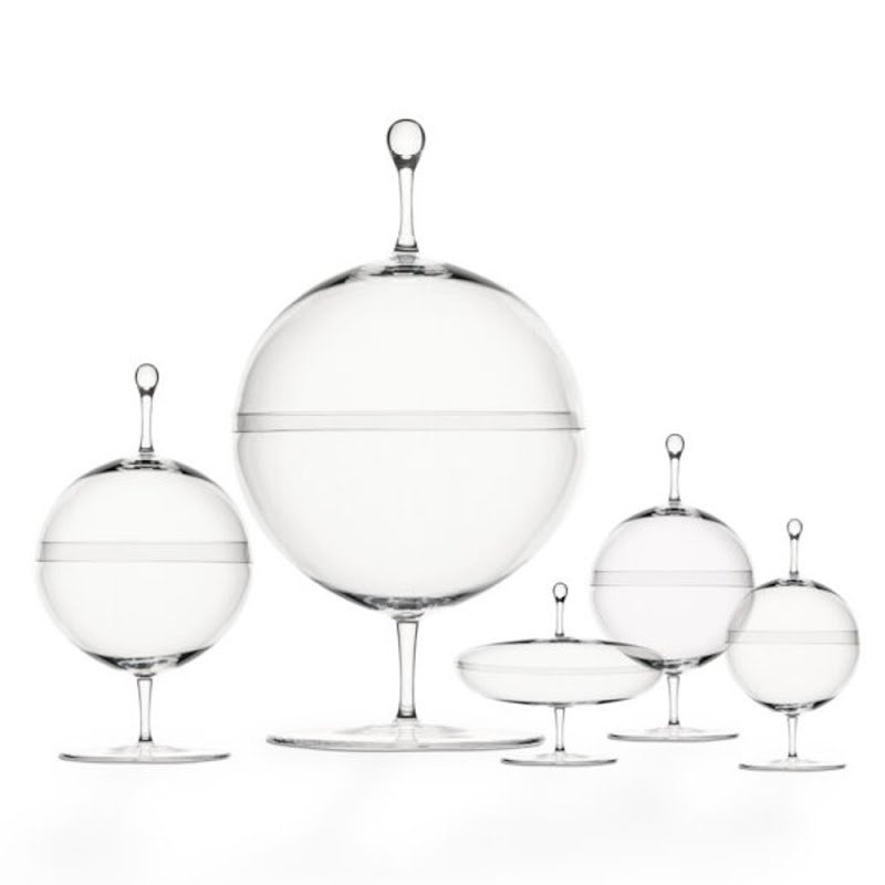 These exceptional yet simple candy dishes are made from delicate, mouth-blown muslin glass, captivating the user with their lightness and elegance. They were first presented at the Paris “Exposition des Arts Décoratifs” in 1925