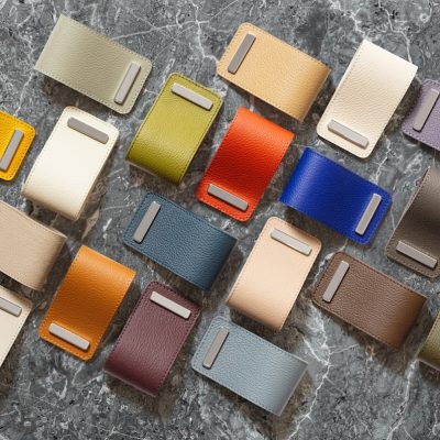 Napkin ring from Pelle Frau ® leather with polished chrome closing.