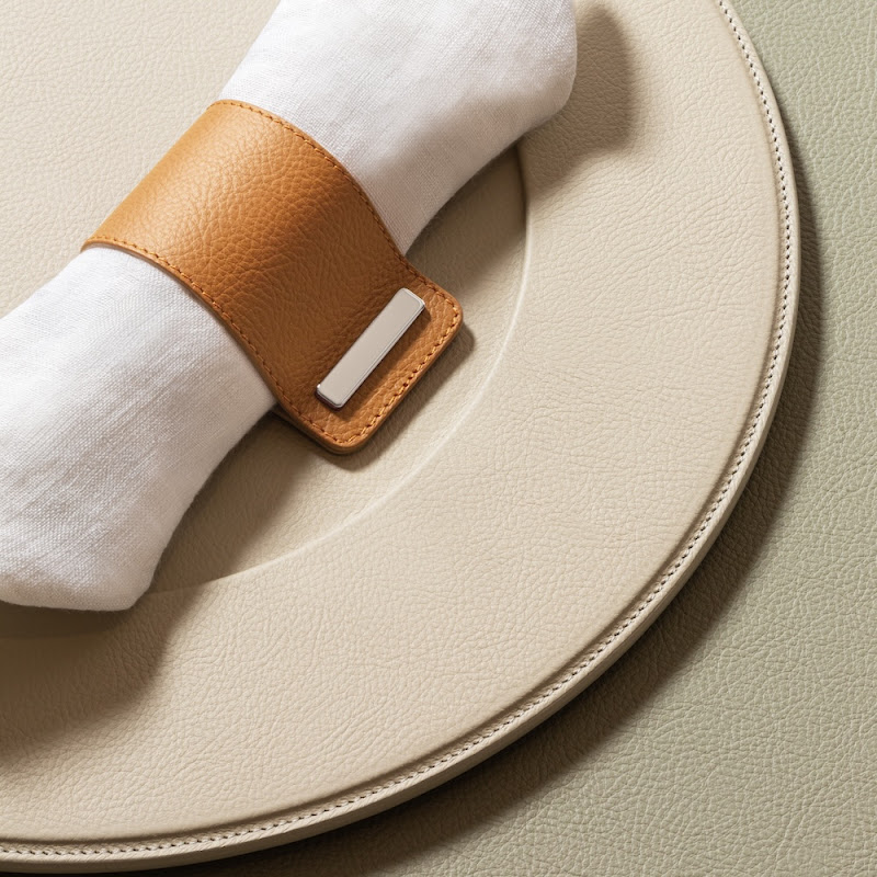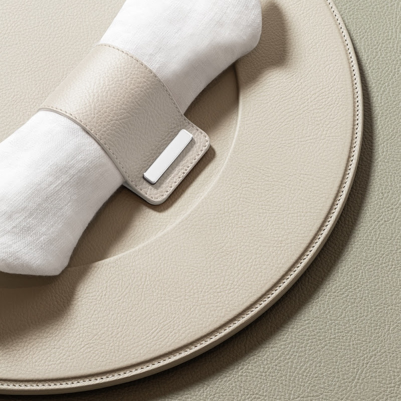 Napkin ring from Pelle Frau ® leather with polished chrome closing.