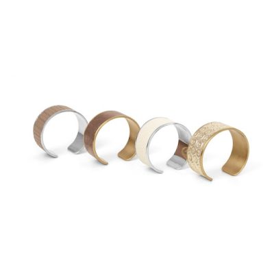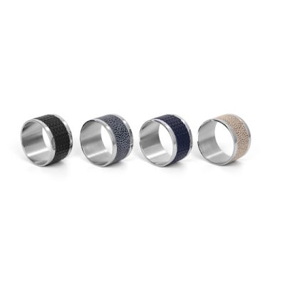 Napkin ring or holder in chrome or satin brass finishing and leather insert