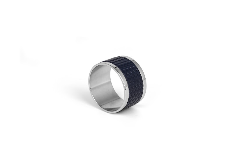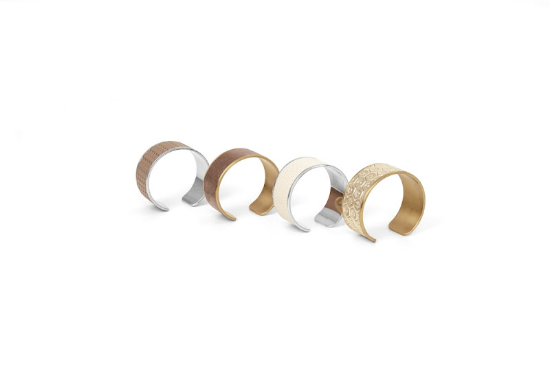 Napkin ring or holder in chrome or satin brass finishing and leather insert