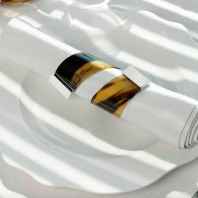 Set of 2 napkin rings in horn and stainless steel