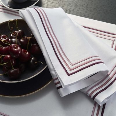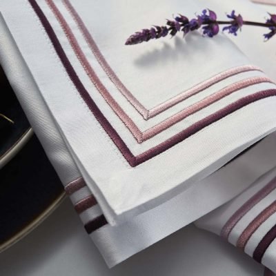 Placemats, napkins and table cloths are made to order in your preferred sizes and fabric, with embroidery in a colour of your choice.